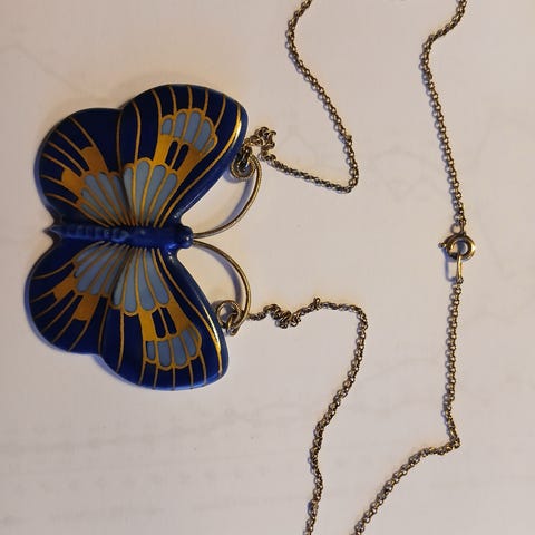 2 halskæder i forgyldt sterlingsølv (925S) med sommerfugle porcelæns vedhæng.