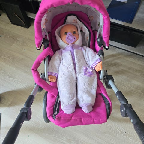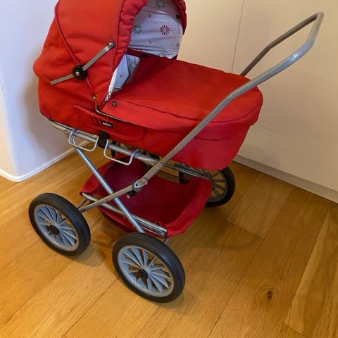 Den kan klappes sammen så den fylder mindre. Nyvasket kørepose medfølger . Der er brugsspor og den trænger til en mindre rengøring men den fungerer som den skal . Den kan leveres mod km betaling