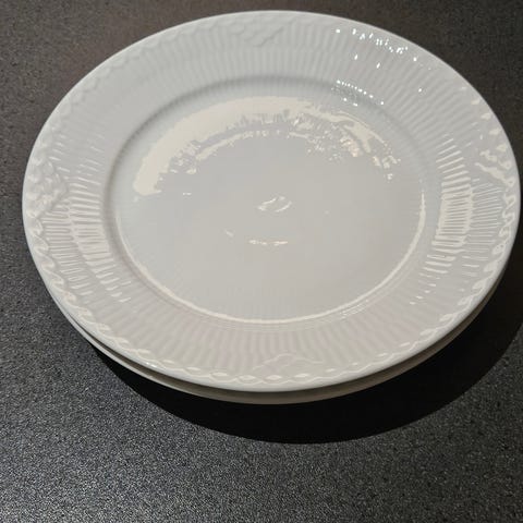Sælger 6 stykker Royal Copenhagen tallerkener i serien Hvidriflet, diameter 22 cm.