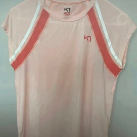 Sports t-shirt fra Kari Traa str. M. Aldrig brugt men vasket. Kal bruges til fitness, løb eller andet sport som du dyrker. Dejlig tynd og luftig på ryggen.