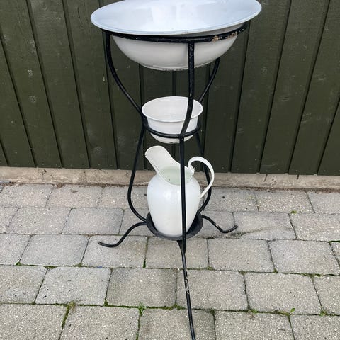 Emaljeret Vaskekar med Træramme 60x50 cm