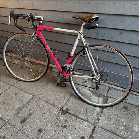 Skøn Colnago sælges som renoveringsprojekt. Har selv sat nye dæk og bremseklodser på, og så nåede jeg ikke længere, for fandt ud af at cyklen er lidt for stor til mig. (Øv!) Den har stået stille (indendørs) i årevis og trænger til en kærlig og kyndig hånd. Kendte problemer: