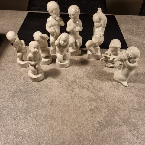 Bing & Grøndahl B&G figurines sæt bestående af 4 hvide porcelænsfigurer. Hver figur har unikke positurer og detaljer. Fremstillet i porcelæn med mærker og etiketter fra Bing & Grøndahl under bunden. Sættet er velegnet til samling eller dekoration.