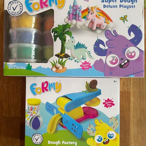 Dessertfabrik modellervoks. Sættet indeholder de viste redskaber samt 6 bøtter modellervoks, som sagtens kan bruges endnu.