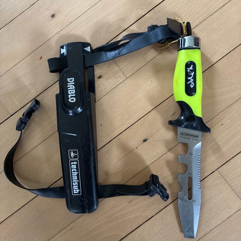 Rustfri dykkerkniv med skede – kompakt model