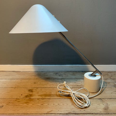 Vintage Pandul Jørgen Gammelgaard bordlampe med hvid skærm og metalstel. Lampen har et justerbart design. Velegnet til brug som læselampe eller stemningsbelysning i hjemmet eller på kontoret. Afhentes i Nordhavn.