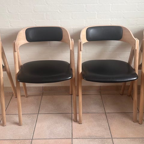 Findahl spisebordsstol - Bøg lak / sort læder og armlæn.
