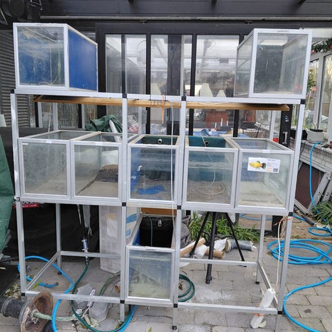 Akvarium i glas med filter og belysning