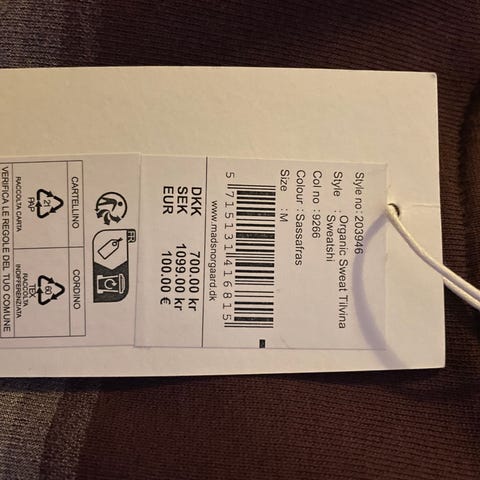 Mads Nørgaard kort sweatshirt i størrelse XS, men svarer mere til en S.
