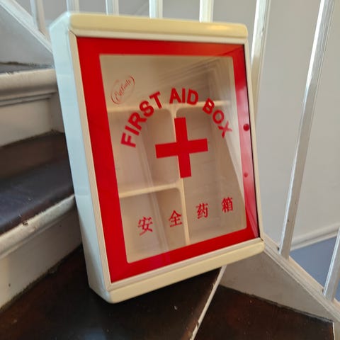 ÄTRAN retro vægskab/medicinskab i rød metal.