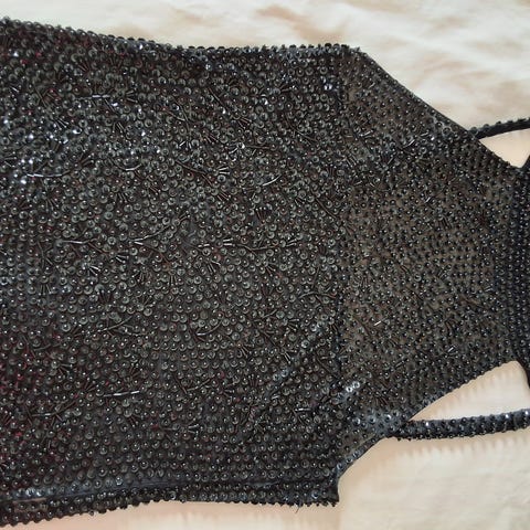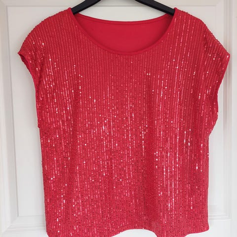 Bluse med pailetter på skuldrene.