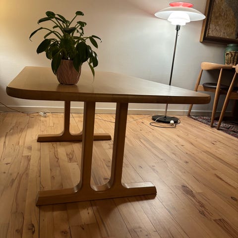 Snedkergaarden spisebord i træ med mål på 200x90 cm. Bordet har en rektangulær bordplade og et solidt understel. Designet er enkelt og funktionelt, egnet til spisestuebrug.