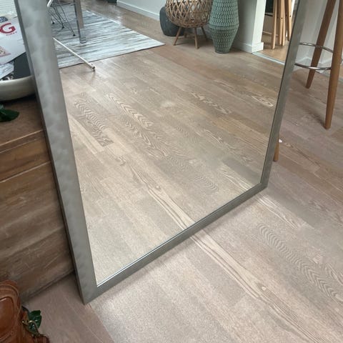 Lækkert spejl på 80 x 60 cm, med lys i, og vejr station. Fejlkøb.