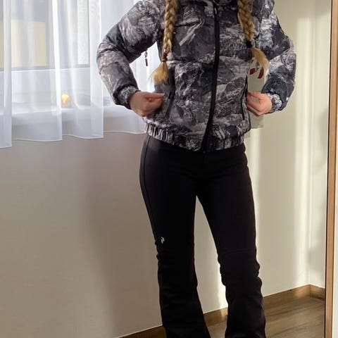 Smart skisæt til kvinder fra Lindeberg i str XL (svarer til 42/44). Jeg har kun brugt det i 10 dage så det står som nyt. Jakken har aftagelig hætte, snefang udluftningslynlåse under arme, inderlommer, lomme til liftkort mm. Bukser har en god pasform, jysterbar talje, forstærkninger på knæ, snefang og lynlåslommer.