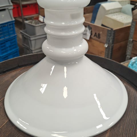 Holmegaard Apoteker pendel, designet af Sidse Werner. Skærmen er udført i opal hvid glas. Pendlen leveres inklusiv hvid ledning Lyskilde: 40 W/E14