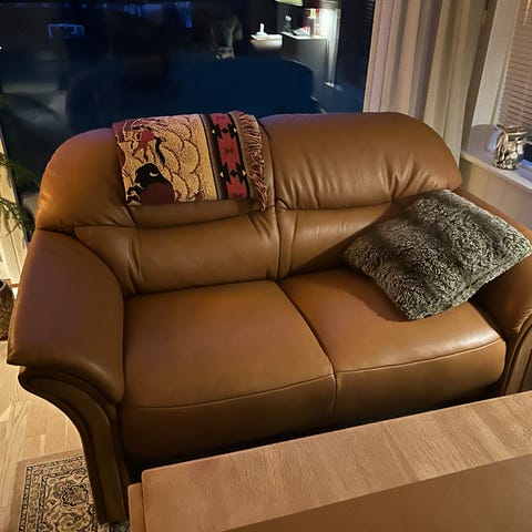 Har været gæstesofa i en stue på plejehjem, hvor min mand boede.