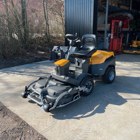 Stiga frontklipper kører rigtig godt. Med Quick flip klippebord , let vedligeholdelse , elektrisk start-stop af klipper , el-højdejustering af klipper , hydrostatisk frem-bak , kugletræk.