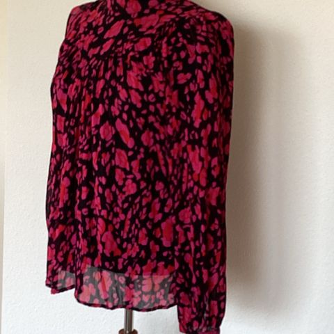 InWear bluse i størrelse 36 til kvinder. Blusen har en rød farve med et mønstret design. Materialet fremstår let og tekstureret med blomsterdetaljer. Ærmerne er trekvartlange, og blusen har en v-udskæring. Velegnet til hverdagsbrug.