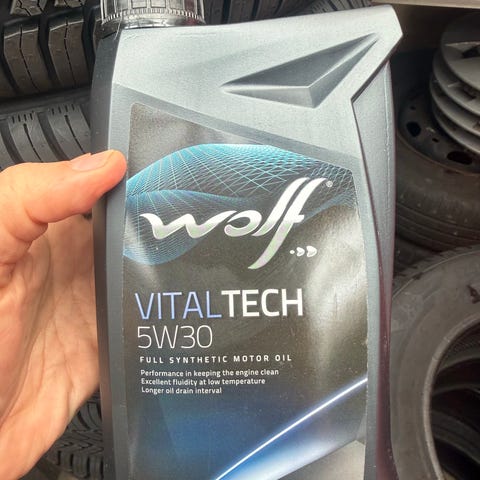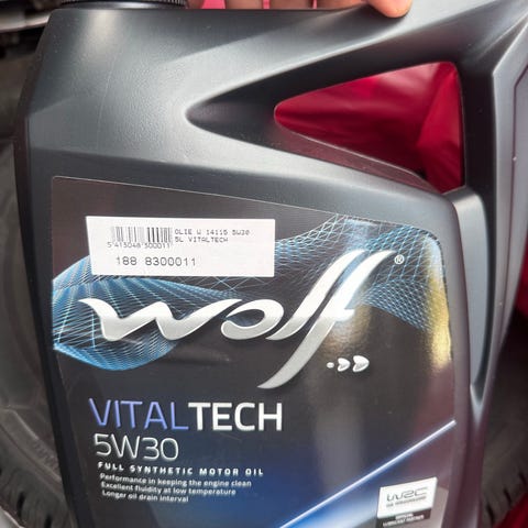 Wolf Official Tech 5W30 MS-F motorolie i 5 liters emballage. Oplagt til brug i biler, der kræver 5W30 motorolie med MS-F specifikation. Købt til Ford Focus 2011 1,6 diesel. Passer sikkert til flere andre bilmodeller.