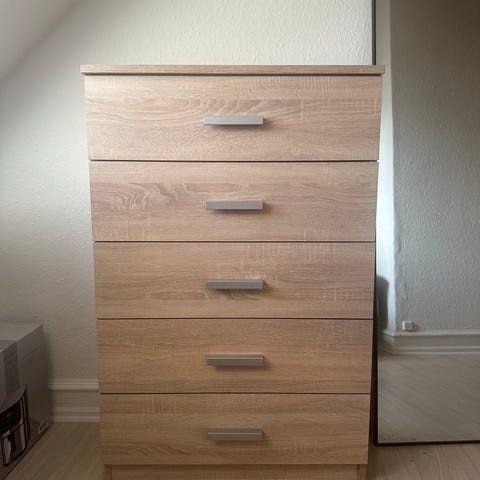 Kommode fra Jysk “TAPDRUP” med 5 skuffer den smalle model i hvid