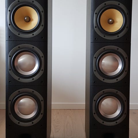 Et sæt klassiske B&W-højttalere med masser af power, detaljer og varme i lyden – perfekt til både musik og film.