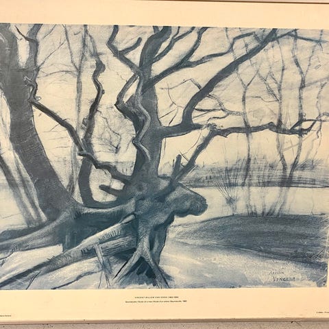 Super fint tryk der forestiller en bonde på marken. En af Van goghs tegninger. Billedet måler i højden 62 og bredden 44