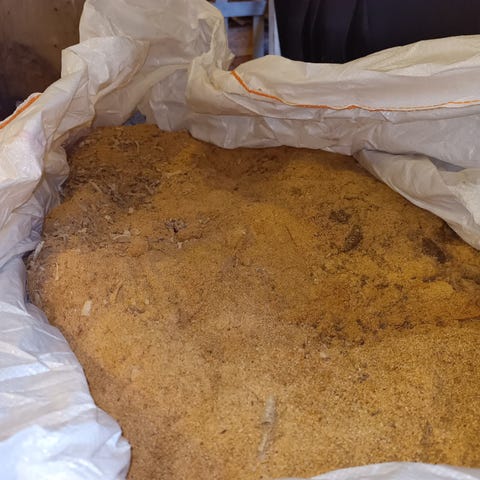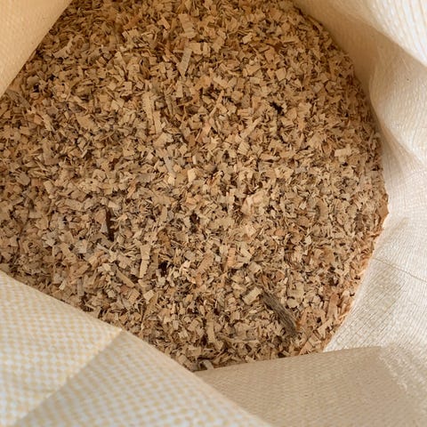 Har 15-20m3 spåner/savsmuld fra forskelligt hårdttræ som eg, ask og valnød og en smule fyrretræ