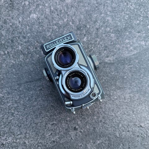 Rolleiflex Twin-Lens Reflex (TLR) kamera – en klassiker inden for mellemformat fotografering. Testet og virker perfekt. Bruger ikke batteri. Perfekt til både samlere og fotografer, der vil opleve den unikke TLR-perspektiv og kvadratiske 6x6 cm billeder på 120-film.