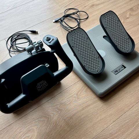 CH Products Flight Sim Yoke Flight Controller med tilslutningskabler. Enhed designet til flysimulatorer for at give realistisk kontrol over flyets bevægelser. Fremstillet i sort plastmateriale med flere knapper og kontrolfunktioner til styring. Velegnet til brug i computerspil og flysimulatorer.