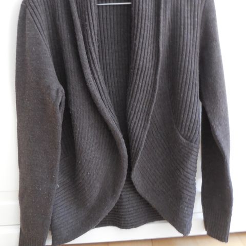 Cardigan, trøje, str. S, sort, H & M. Længde - fra skulder 73 cm. Fra røgfrit hjem. Kan sendes med gls. Køber betaler porto. Se også mine andre trøjer og øvrige annoncer. 🧥 (Cam)(rød task)(25)