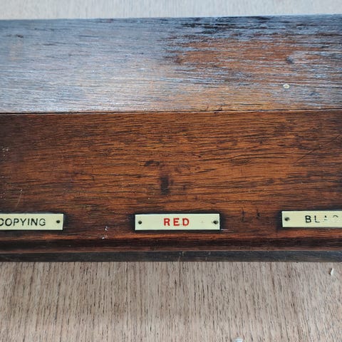 Retro til skrivebordet, Rådyr i massiv kobber, holder til fyldepen, en rande til at ligge fyldepen i og holder til breve, papirer o.l.