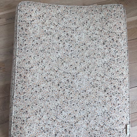 Superfint og lækkert pusleunderlag til bleskift på farten. Foldbart med stropper, så det ikke fylder meget i tasken. Den ene side er coated og vandafvisende. Har været virkelig glad for det og det er i super stand.