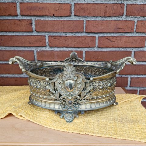 2 - antik skål på tre ben lavet af solid messing og forestiller en kerub, som spiller på en cello. Den er velegnet til at opbevare små genstande som smykker, nøgler eller mønter og kan også bruges som en dekorativ genstand på et bord, en kommode eller i en entré. Genstanden stammer fra det tidlige 20. århundrede. Flot stand. Sjældent fund. L 15 cm, B 8 cm, vægt 200 gr.