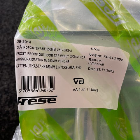 Udendørs vandhane, FM Matsson. Ubrugt.