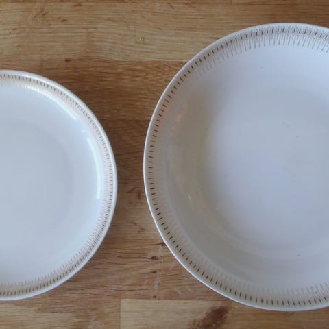2 frokost tallerkener, relief. Den ene har stempel med B&G den anden uden.