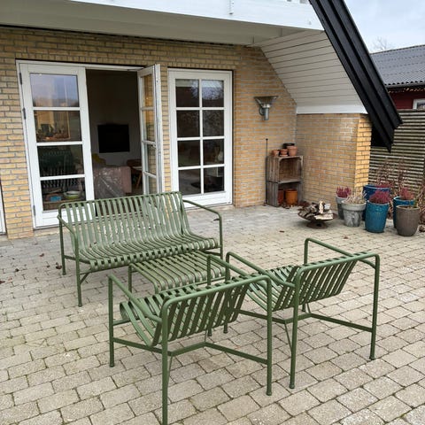 Hay palissade lounge stole i hvid. Har to stk. De har fået nogle rustpletter og lidt misfarvninger. Har prøvet at tage billeder af det. Men ellers fejler de ikke noget.
