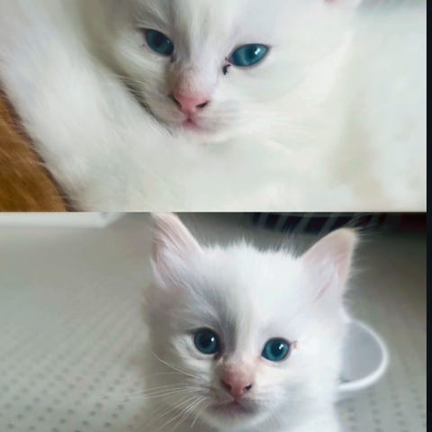 Crossbreed Ragdoll/Tyrkisk Van unika! Kuldet er født 18. juli 2025 (15 uger pt) og er de yndigste og lækreste små pelstotter! Vores Tyrkiske Van avlshankat sprang på vores smukke Ragdoll - og det har resulteret i endnu et af disse fantastiske og farverige kuld. Mor er nu neutraliseret, så det er absolut sidste chance for at få fingrene i én af disse: