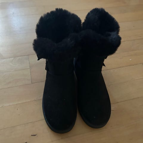 Bløde og lækre, men stadig med fast hæl og god sål. Sorte med glimmerbånd. Mærke Anna Field.