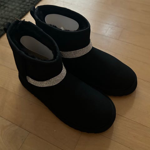 Bløde og lækre, men stadig med fast hæl og god sål. Sorte med fake fur.