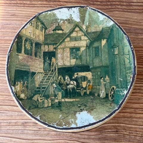 Smukkeste patina på oldgammel småkagedåse.