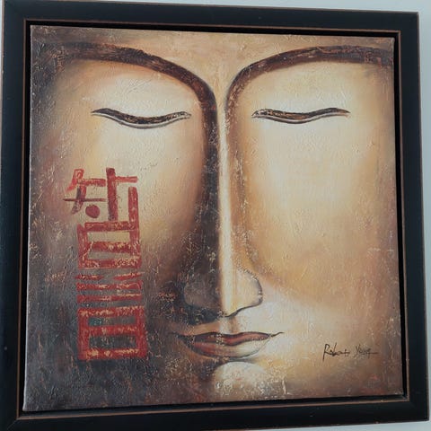 Oliemaleri, Robert Yong, motiv: Blomster/Have, stil: Modernisme, b: 75 h: 75, Flotte friske farve til stue, sommerhuset, børnetandlæge, ect...