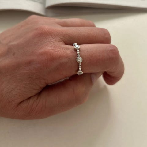 Smuk vintage hvidguldsring med diamant 0,20 ct., ”gammel slib”. Har ligget ubrugt i længere tid. Den fortjener at blive brugt og sælges derfor. Fremstår som ny helt uden brugsspor/ridser. Størrelse i danske mål 52-53 - engelsk str M