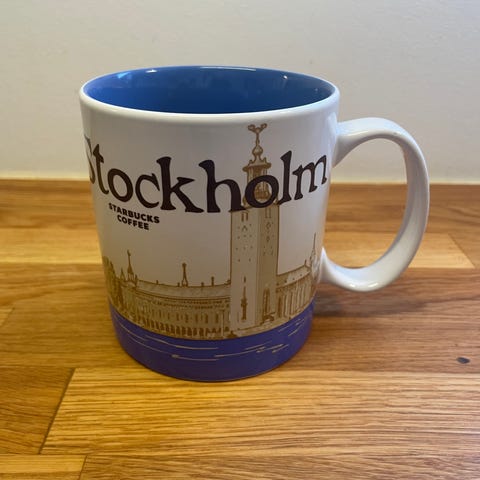 Starbucks Berlin krus i keramik med en kapacitet på 473 ml. Kruset er hvidt med rød inderside og bund, dekoreret med Berlin-motiv.