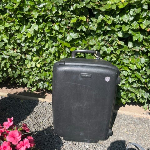 Rummelig og solid. 45*60*20. Blå med gule kanter
