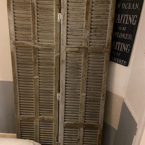 2 sæt eksklusive Indendørs skodder (shutters) fra Jasno i hvidt træ. Skodderne kan foldes på midten og dermed gøres mindre.