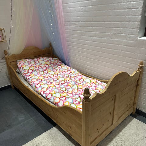 Virkelig fin vintage karlekammerseng med fine detaljer. Der følger lameller med. K