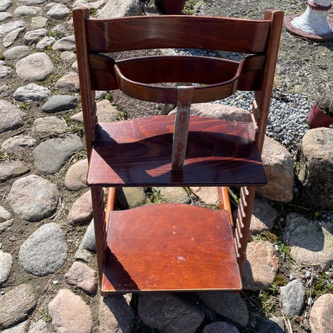 Rigtig fin blå trip trap stol med et stofklæde som kan vaskes og god og holdbar.
