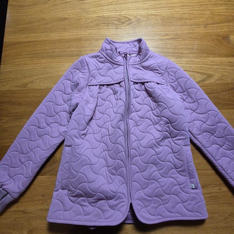Wheat børnejakke thermojakkei lyserød farve, størrelse 104, designet til piger. Jakken har et quiltet mønster og lukkes foran med lynlås. Materialet og designet er egnet til børns daglige brug.