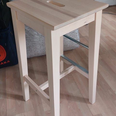 Sælger to ens NILSOLLE barstole fra IKEA i massivt birketræ med fodstøtte i stål.