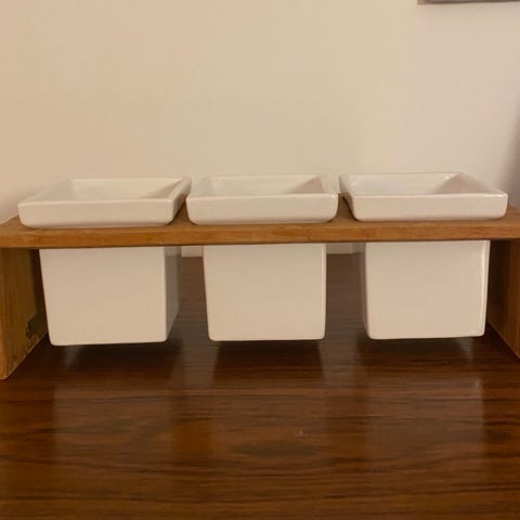 Rigtig flot Plint 4 i teaktræ og porcelæn fra Skagerak (tidligere Trip Trap).